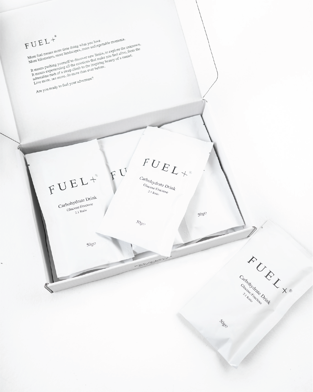 The FUEL+ Drink Mix provides 50g of carbohydrates and 500mg of sodium per serving. Formulated to support sustained energy and hydration during prolonged exercise.